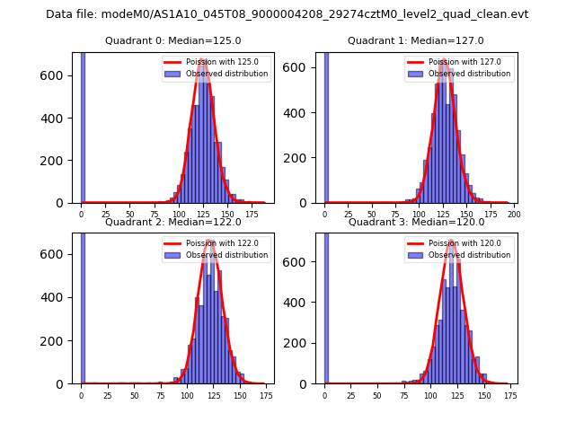 Red curve is a Poisson curve with rate = median count rate of data. |