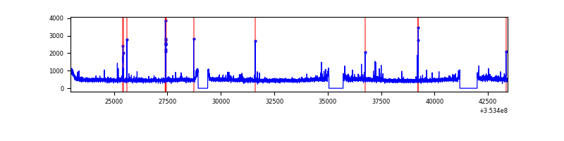 Red curve is a Poisson curve with rate = median count rate of data. |