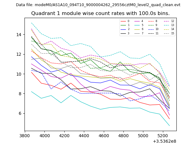 Module-wise count rates for Quadrant A