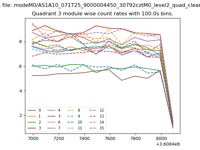 Module-wise count rates for Quadrant A