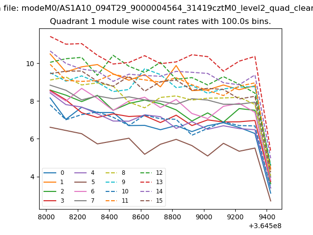Module-wise count rates for Quadrant A
