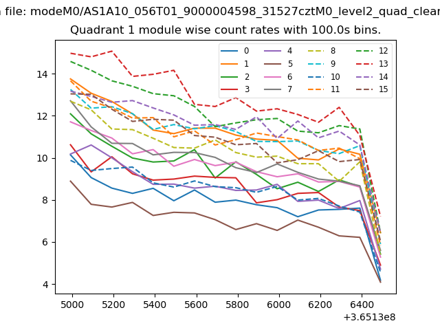Module-wise count rates for Quadrant A