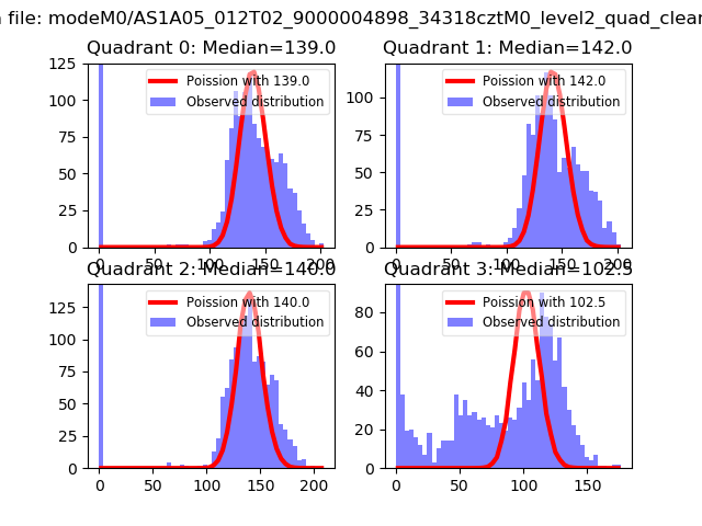 Red curve is a Poisson curve with rate = median count rate of data. |