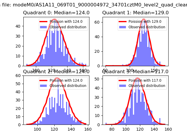 Red curve is a Poisson curve with rate = median count rate of data. |