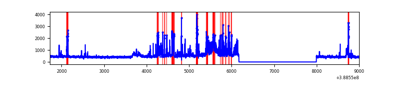 Red curve is a Poisson curve with rate = median count rate of data. |
