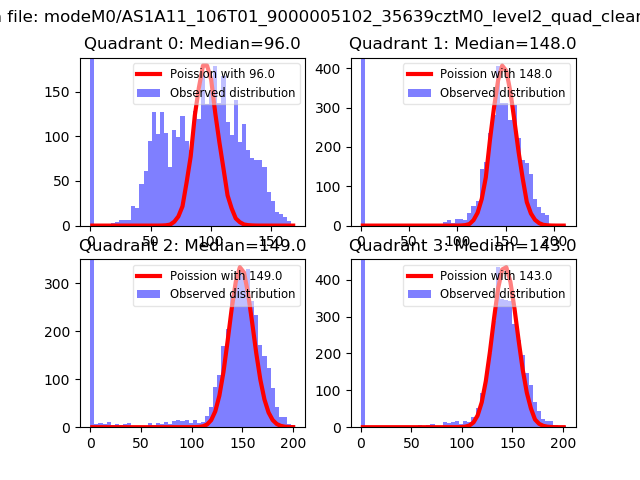 Red curve is a Poisson curve with rate = median count rate of data. |