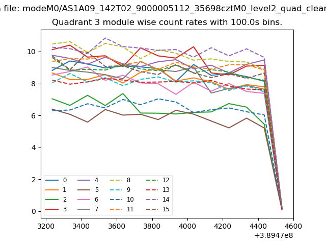 Module-wise count rates for Quadrant A