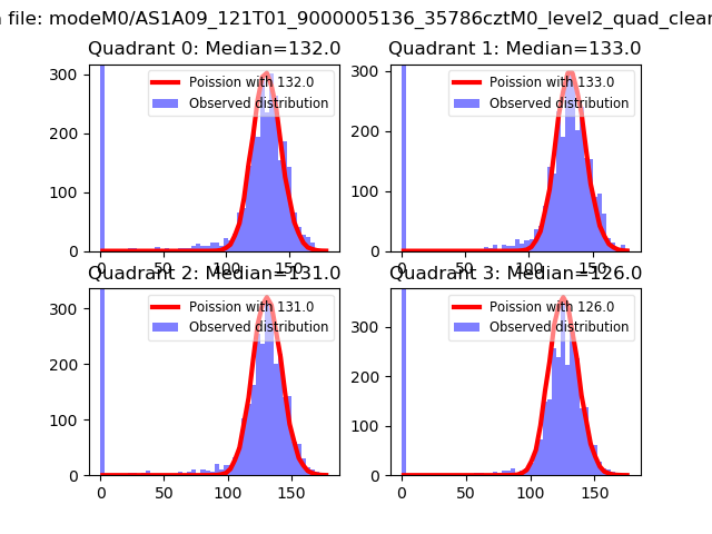 Red curve is a Poisson curve with rate = median count rate of data. |