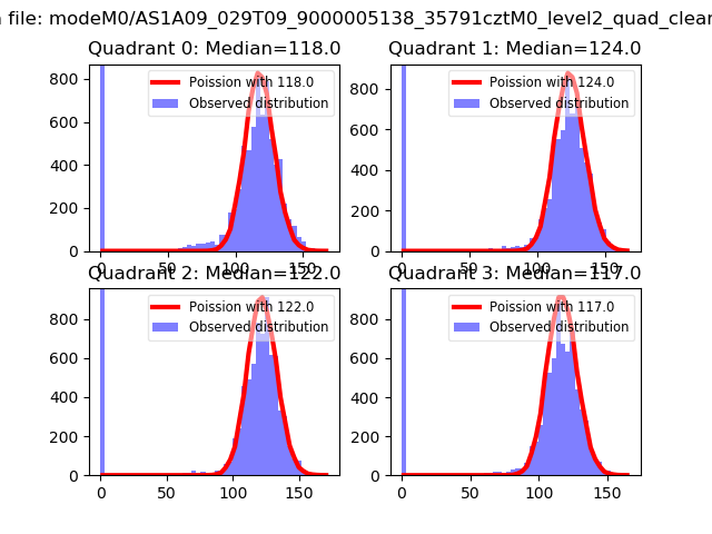 Red curve is a Poisson curve with rate = median count rate of data. |