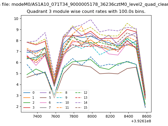 Module-wise count rates for Quadrant A