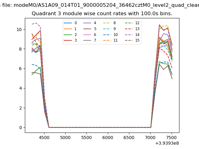 Module-wise count rates for Quadrant A