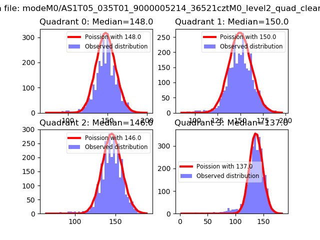 Red curve is a Poisson curve with rate = median count rate of data. |