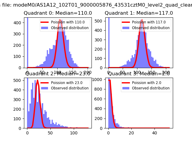 Red curve is a Poisson curve with rate = median count rate of data. |