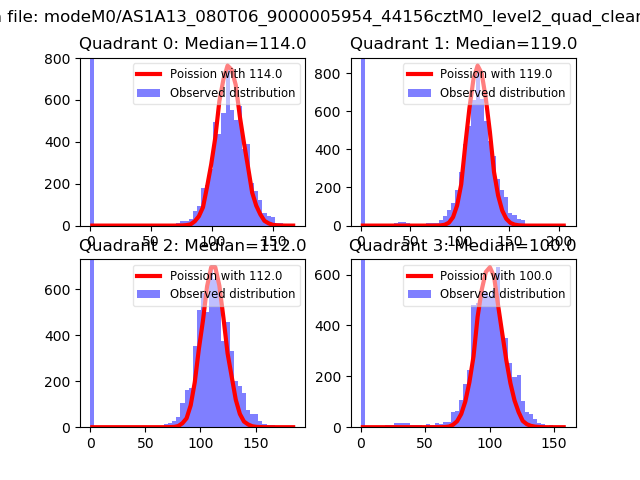 Red curve is a Poisson curve with rate = median count rate of data. |