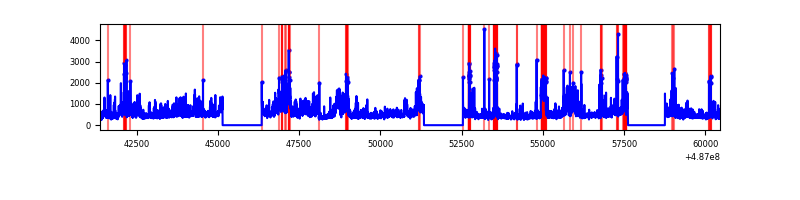 Red curve is a Poisson curve with rate = median count rate of data. |