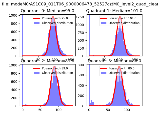Red curve is a Poisson curve with rate = median count rate of data. |