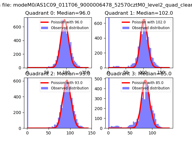Red curve is a Poisson curve with rate = median count rate of data. |