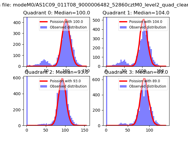 Red curve is a Poisson curve with rate = median count rate of data. |