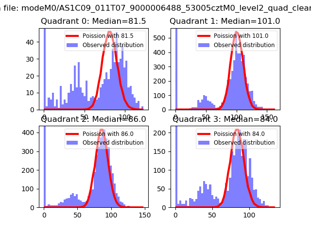 Red curve is a Poisson curve with rate = median count rate of data. |