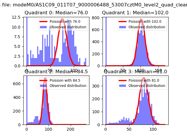 Red curve is a Poisson curve with rate = median count rate of data. |
