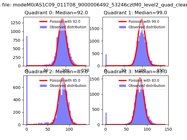 Red curve is a Poisson curve with rate = median count rate of data. |
