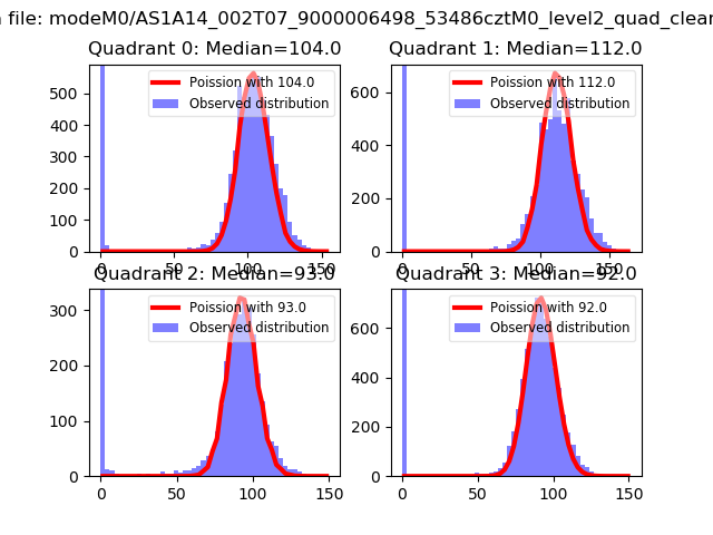 Red curve is a Poisson curve with rate = median count rate of data. |