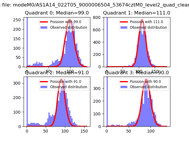Red curve is a Poisson curve with rate = median count rate of data. |