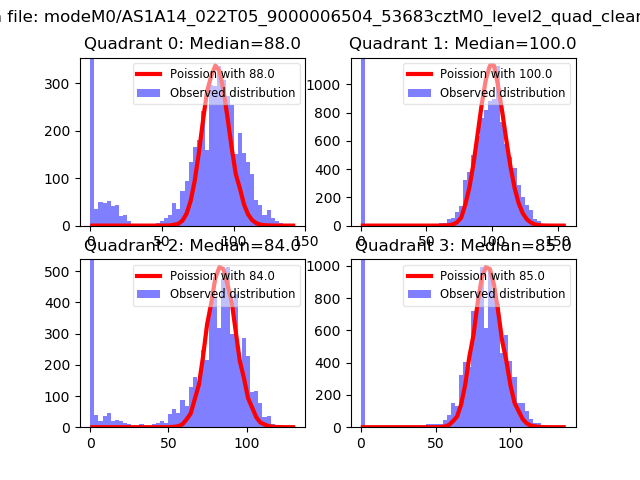 Red curve is a Poisson curve with rate = median count rate of data. |