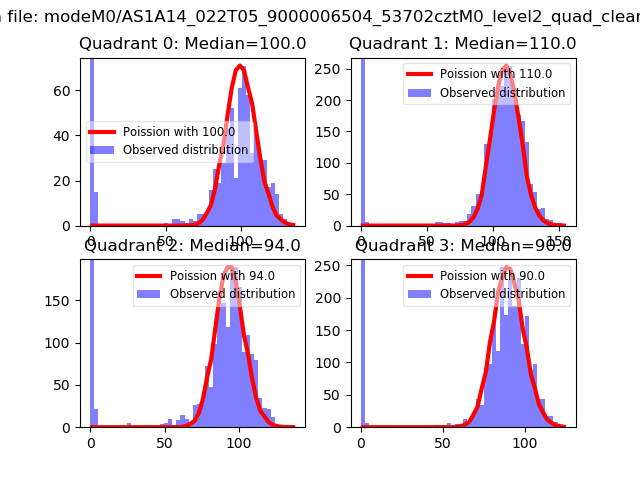 Red curve is a Poisson curve with rate = median count rate of data. |