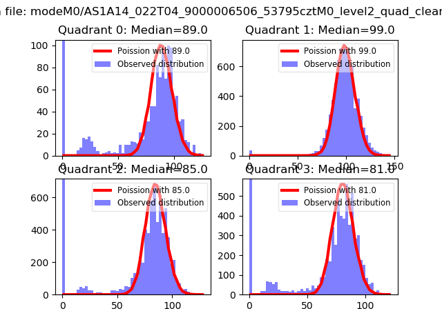 Red curve is a Poisson curve with rate = median count rate of data. |