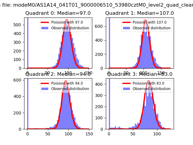 Red curve is a Poisson curve with rate = median count rate of data. |