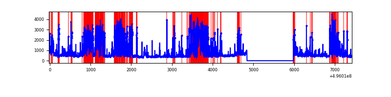 Blue bars denote a histogram of data divided into 1 sec bins.
