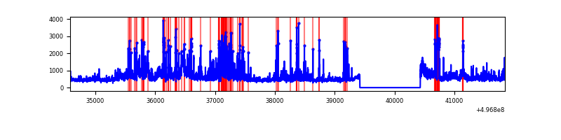 Red curve is a Poisson curve with rate = median count rate of data. |