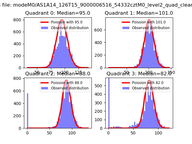 Red curve is a Poisson curve with rate = median count rate of data. |