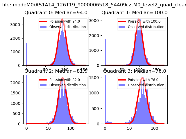 Red curve is a Poisson curve with rate = median count rate of data. |