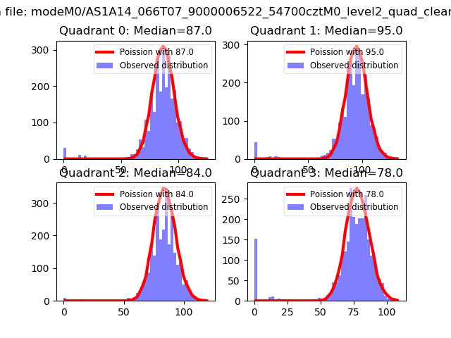 Red curve is a Poisson curve with rate = median count rate of data. |