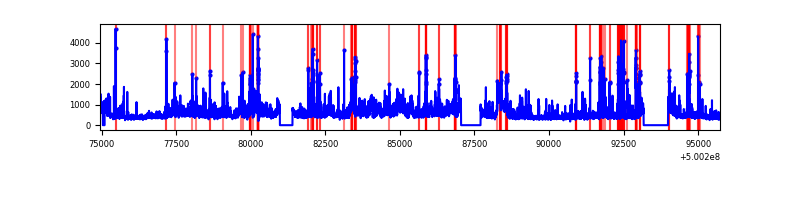 Red curve is a Poisson curve with rate = median count rate of data. |