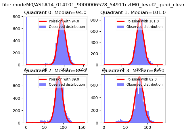 Red curve is a Poisson curve with rate = median count rate of data. |