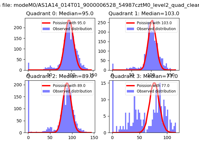 Red curve is a Poisson curve with rate = median count rate of data. |