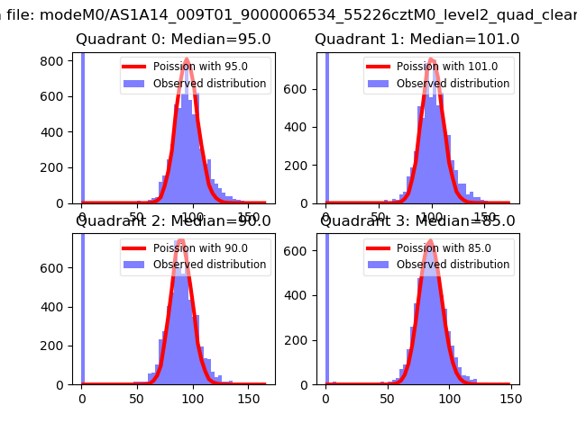 Red curve is a Poisson curve with rate = median count rate of data. |