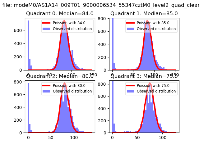 Red curve is a Poisson curve with rate = median count rate of data. |