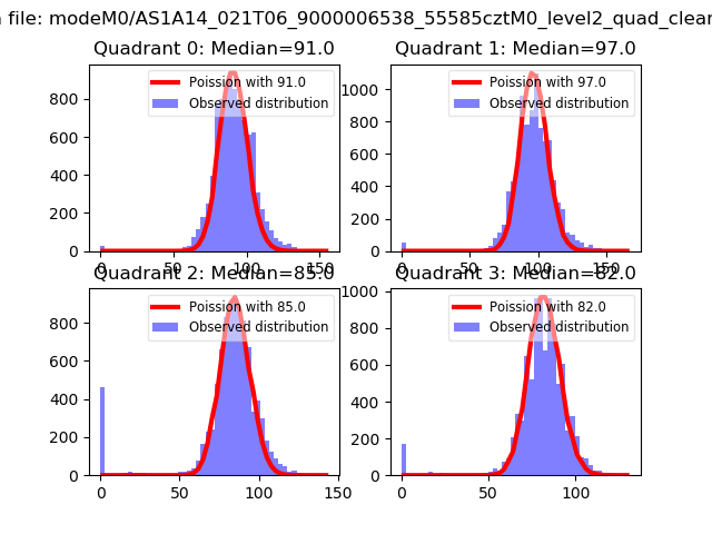 Red curve is a Poisson curve with rate = median count rate of data. |
