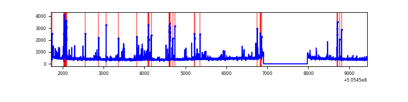 Red curve is a Poisson curve with rate = median count rate of data. |