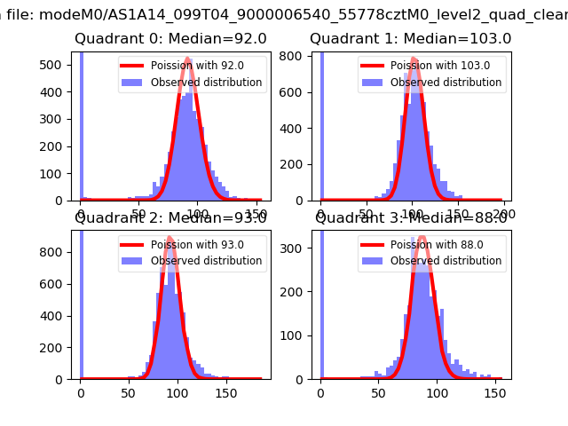 Red curve is a Poisson curve with rate = median count rate of data. |