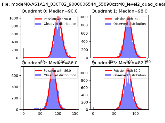 Red curve is a Poisson curve with rate = median count rate of data. |