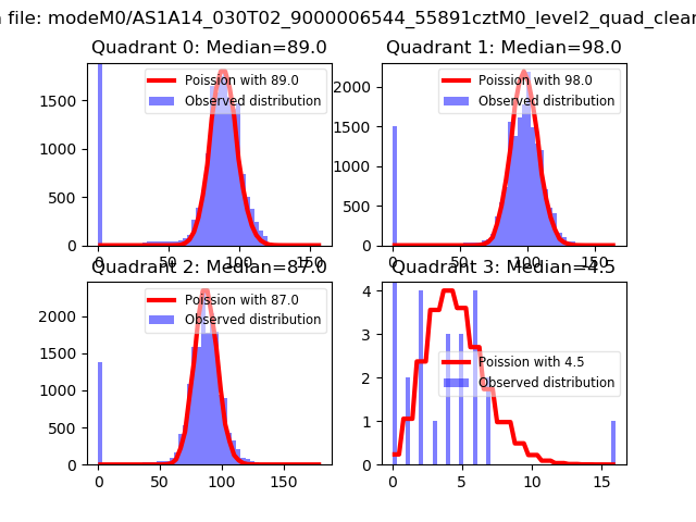 Red curve is a Poisson curve with rate = median count rate of data. |