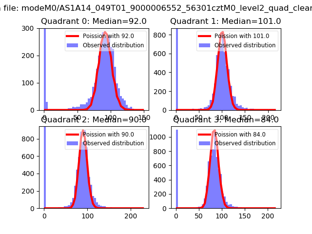 Red curve is a Poisson curve with rate = median count rate of data. |