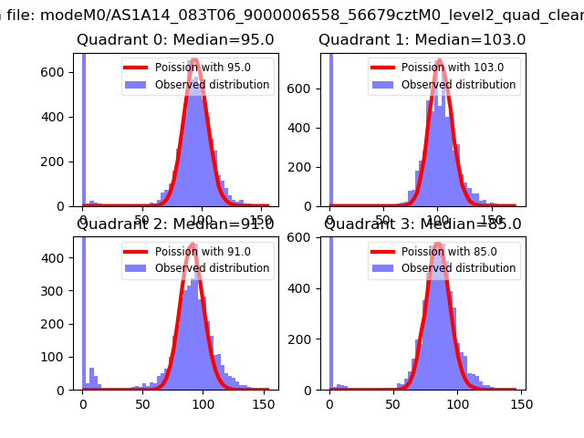 Red curve is a Poisson curve with rate = median count rate of data. |