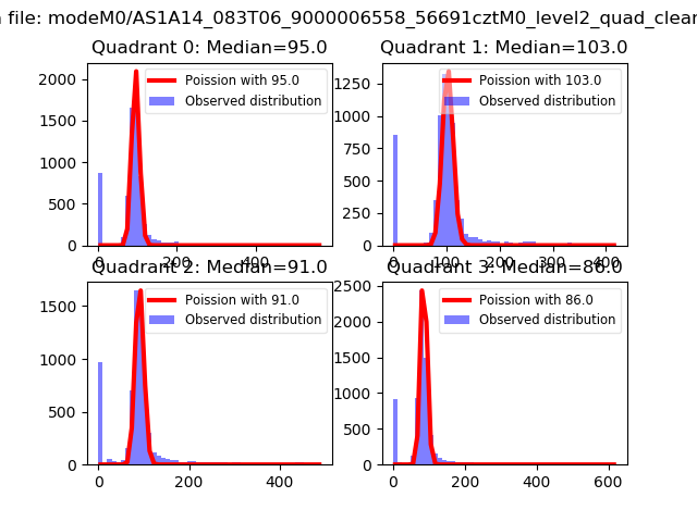 Red curve is a Poisson curve with rate = median count rate of data. |