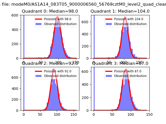 Red curve is a Poisson curve with rate = median count rate of data. |